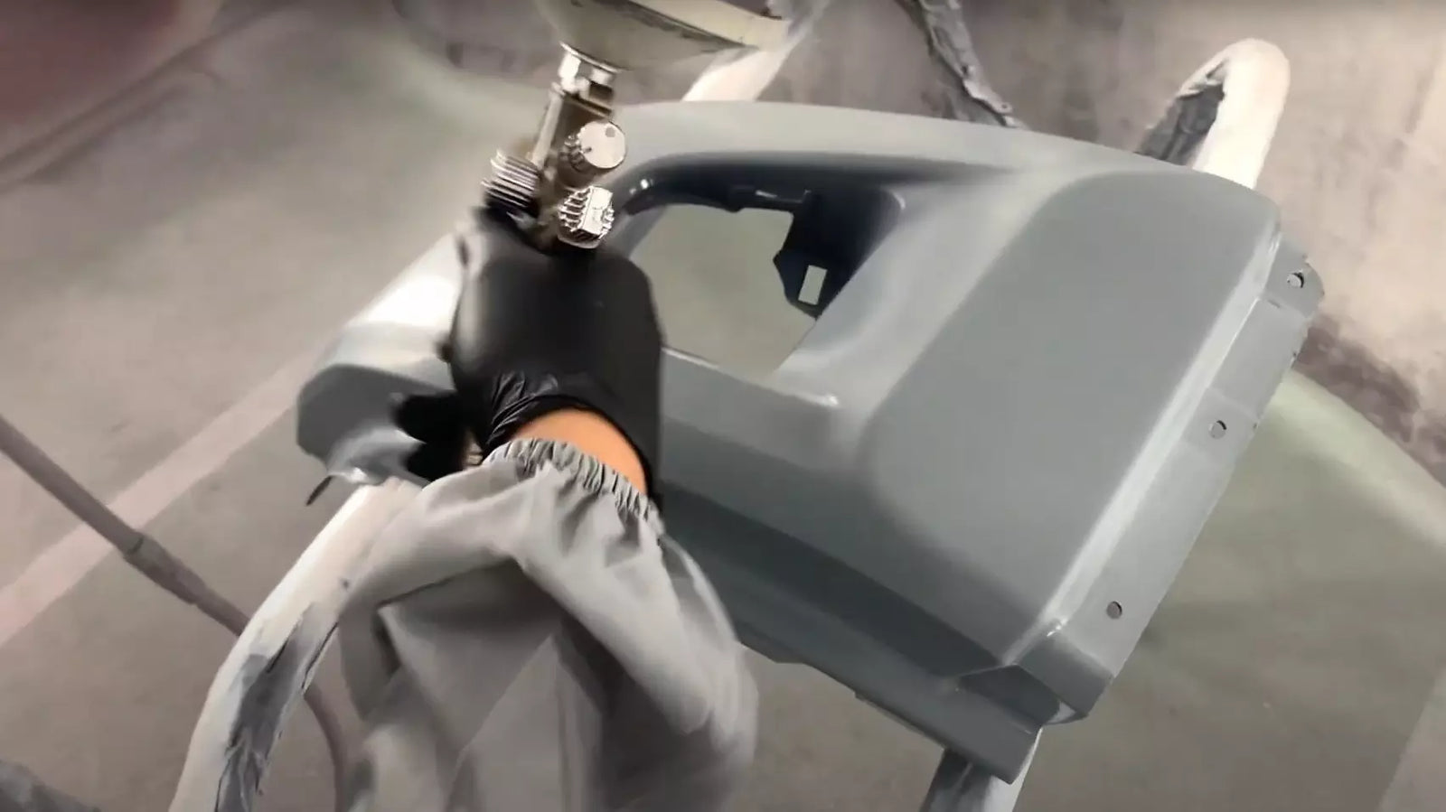 The second part to our prepping process includes scuffing and prepping the car par. Metal has to have primer or moisture and oxygen will eventually rust the metal. Plastic will not rust, but its smooth surface is hard for paint to adhere. So, in most cases, a primer is applied to promote adhesion of the paint. Then, at ReveMoto, we scuff the primer before the painting process to promote better adhesion as well.